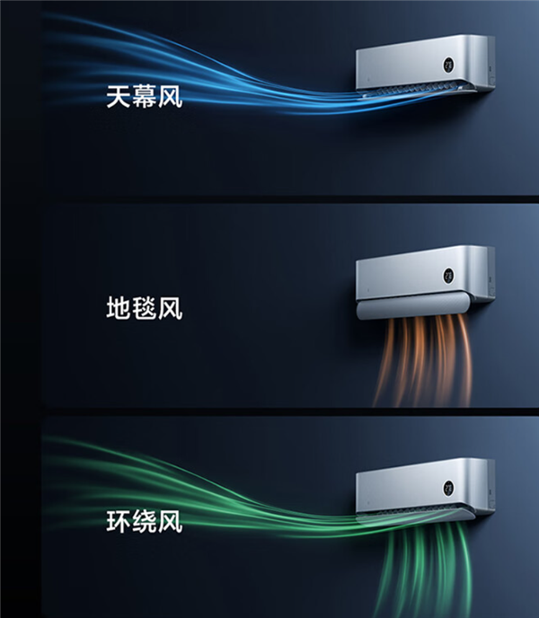 值得一提的是,米家自然风Pro 3匹挂机空调配备了一体化运动导风板,铝合金内衬,提供了天幕风、地毯风和环绕风三种送风模式,其风量可达1500m³/h,适用于客厅、大卧室、商铺和餐厅等场所。