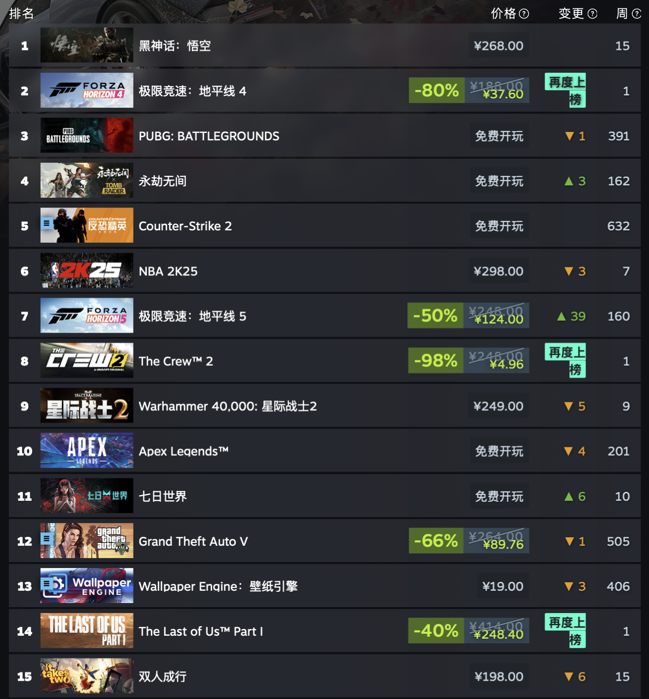 IT之家附 Steam 新一周销量榜(排除免费游戏内容和 Steam Deck):