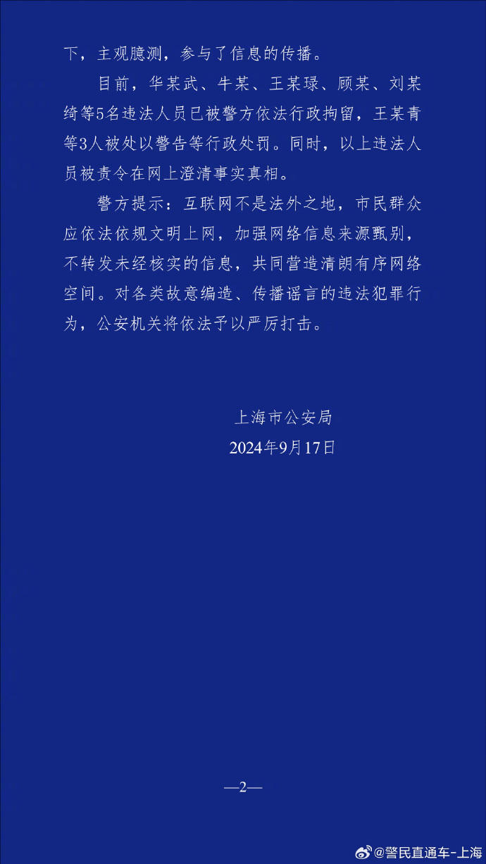 新京报讯 据@警民直通车-上海 消息,8名编造传播“上海有人员因台风被吹落高坠”谣言的违法人员被依法查处。