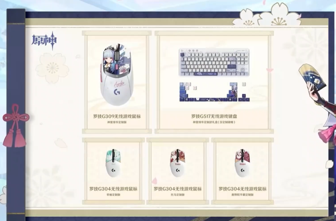 此外,罗技推出了原神联动礼盒新品,以及神里绫华联名 G517 键盘、早柚联名 / 托马联名 / 鹿野院平藏联名 G304 鼠标。